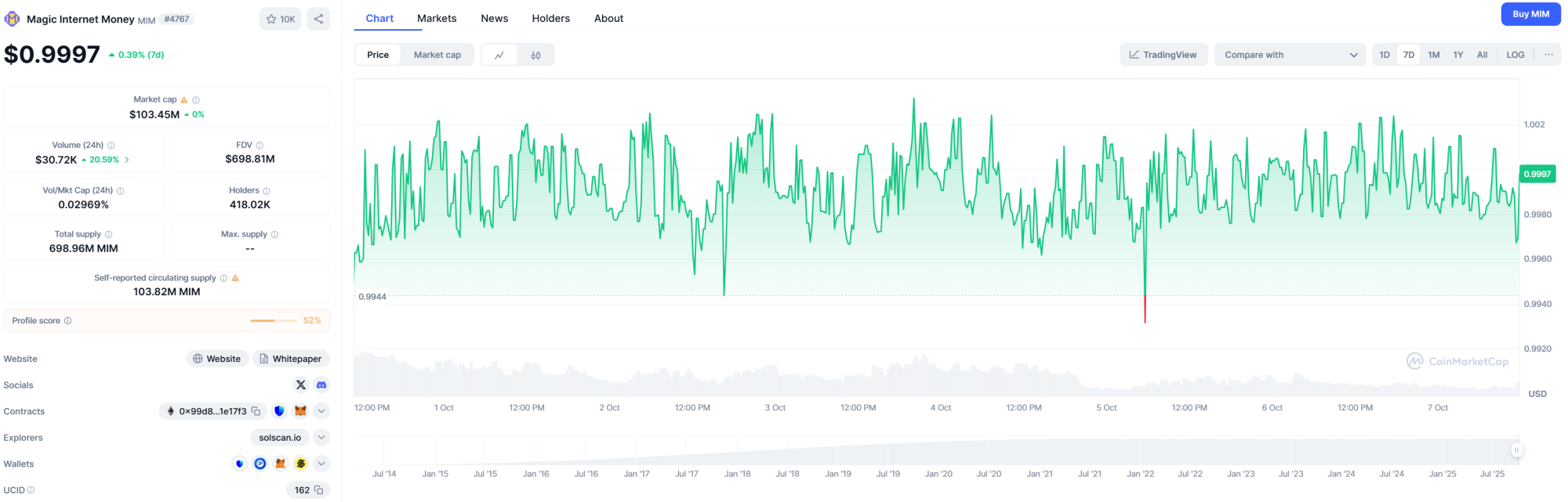 Valor del MIM (CoinMarketCap)