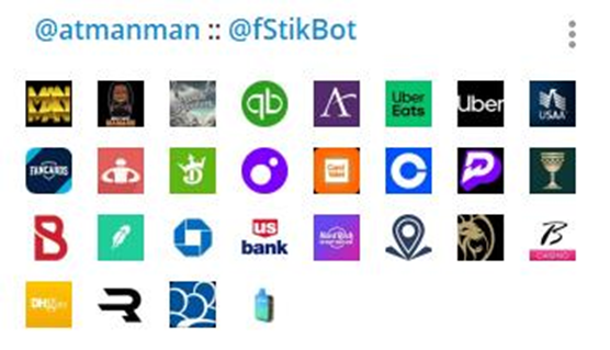 El tercer paquete «@atmanman :: @fStikbot» señala a dos usuarios. El segundo, @fStikbot, sigue activo y es un servicio que convierte imágenes en emojis de Telegram. Los investigadores creen que este instrumento pudo haber sido usado por los atacantes para subir los logotipos de las empresas objetivo. El otro participante del esquema —@atmanman— ya fue eliminado de Telegram, pero al buscar el antiguo alias aparece la página @Atmanmanjl con un nombre árabe y una biografía. Según DarkTower, probablemente estas cuentas están relacionadas.
