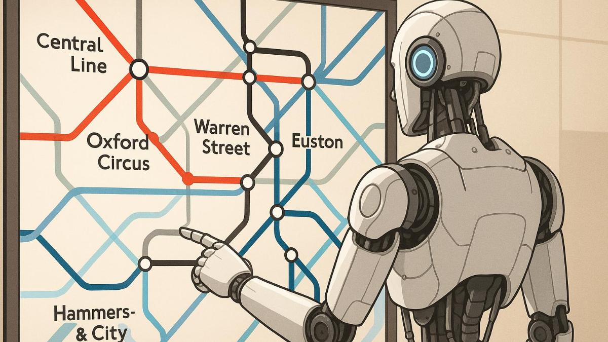 La comparación más clara es la navegación. Cuando una persona traza una ruta en el metro de Londres, por ejemplo de Bond Street a King's Cross, imagina opciones: la Central Line hasta Oxford Circus, transferencia a la Victoria Line, estaciones Warren Street, Euston —y el destino final. El ordenador hace lo mismo, solo que más rápido y sin conjeturas. Busca sistemáticamente un camino, eligiendo los pasos más eficientes. Uno de los primeros y todavía más conocidos algoritmos de este tipo es A* (se pronuncia «ey-star»). Lo idearon en 1968, cuando ingenieros intentaban enseñar al robot a moverse por la habitación de forma autónoma.