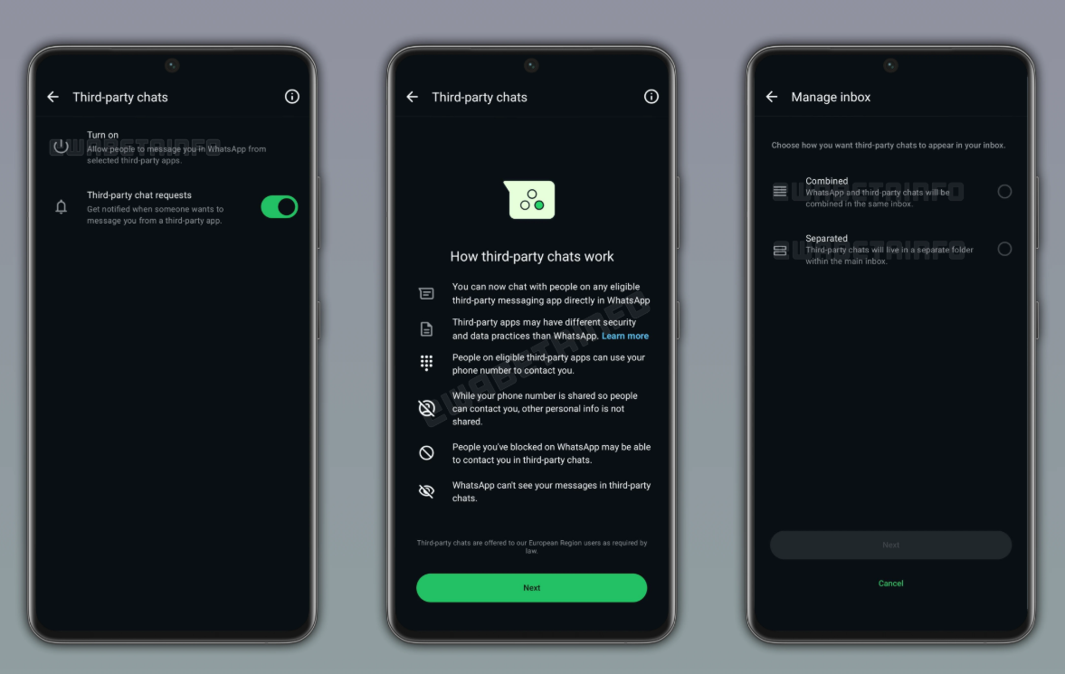 WhatsApp comenzó a probar la esperada función de comunicación multiplataforma. En la nueva versión beta 2.25.33.8 para Android apareció la posibilidad de chatear con usuarios de otros mensajeros directamente desde WhatsApp. Por ahora la opción está disponible solo en Europa y solo para una parte de los probadores beta.