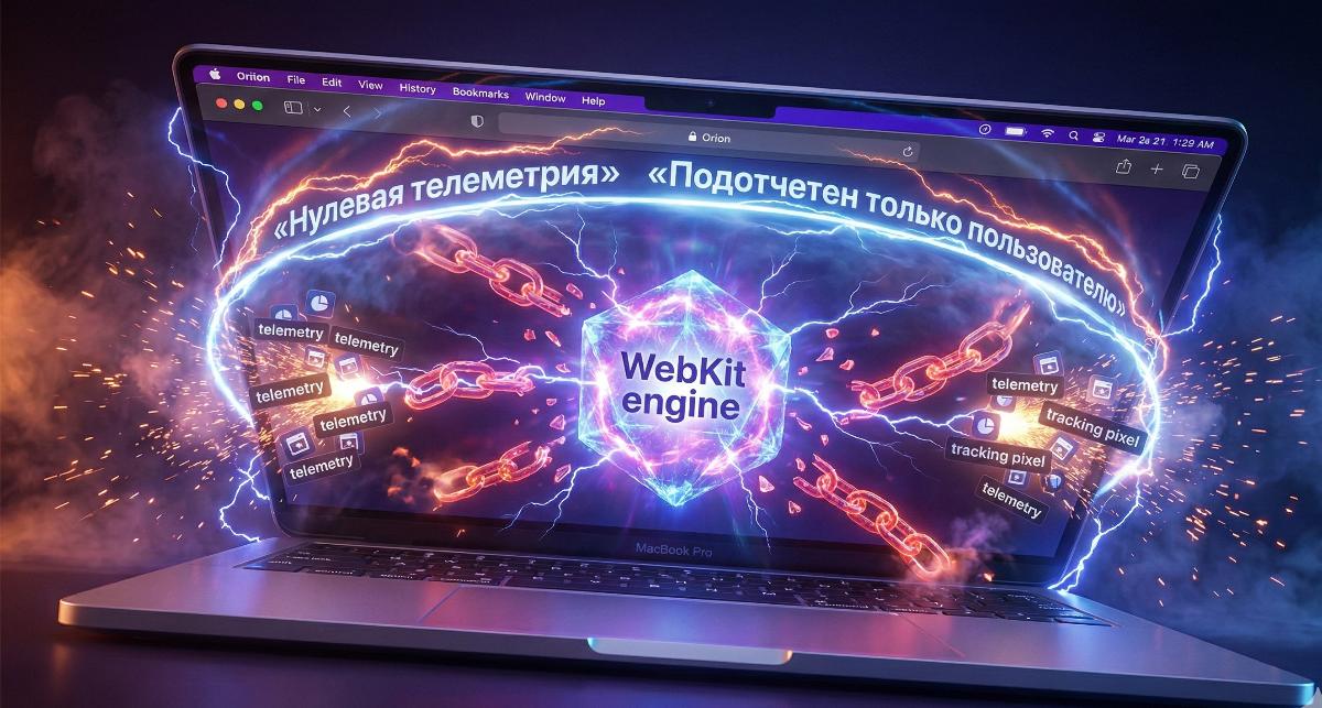 Orion se presenta como una alternativa a los navegadores que monetizan con publicidad y recolección de datos. Los desarrolladores hacen hincapié en la "telemetría cero": el navegador no incluye analíticas integradas, identificadores ni sistemas de seguimiento; no usa tecnologías publicitarias o de rastreo, y la protección contra rastreadores y el bloqueo de contenido están activados por defecto. El equipo afirma directamente que considera el acceso privado a Internet como un derecho básico y construye un navegador que rinde cuentas únicamente ante el usuario, no ante los anunciantes.